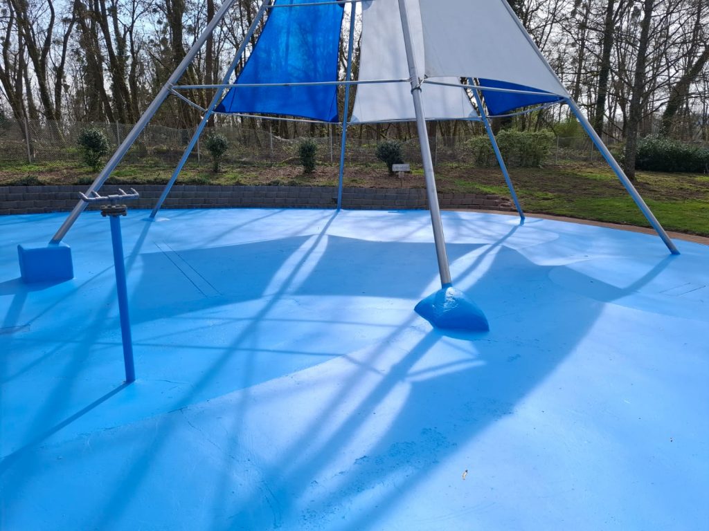 Das Planschbecken ist ebenfalls gereinigt und die Beschattung ist wieder installiert.